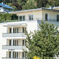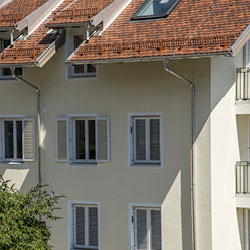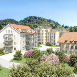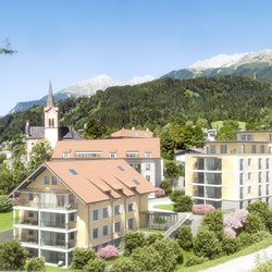 Angelehnt an die Geschichte Mühlaus mit seinen zahlreichen Betrieben tragen auch die Häuser im Village ganz besondere Namen: Mühle, Weberei, Gießerei, Apothekerhaus und Sennerei. Diese umschließen großzügig die Frei- und Allgemeinflächen mit viel Grün und das sanfte Plätschern des Baches bringt Romantik in urbanen Kontext.